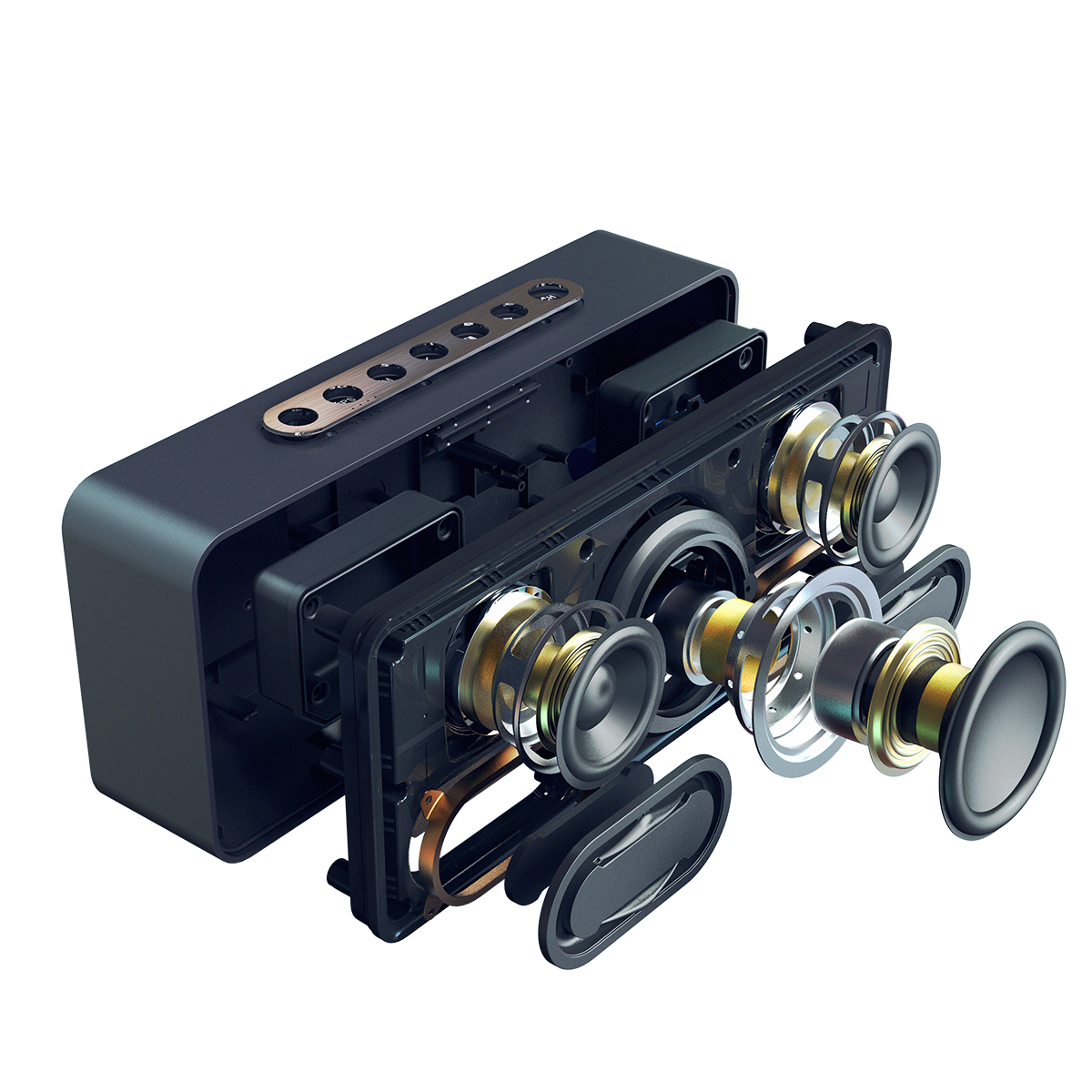 Featuring dual 10W 2-in full-range drivers, a 12W 3-in subwoofer, and dual DSP technologies, this speaker delivers high-quality, room-filling sound with rich bass, tight mids, and crystal clear highs.
