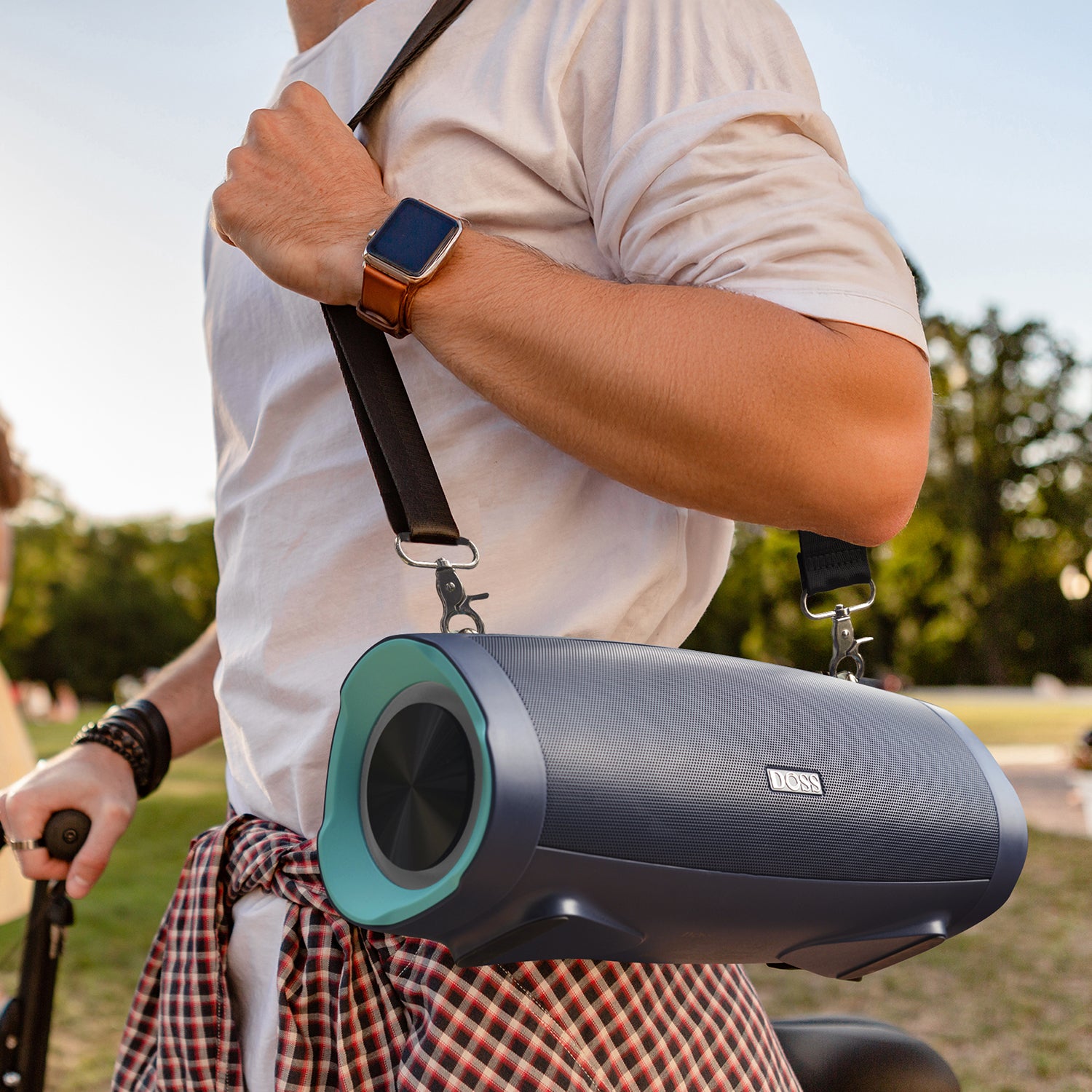 Take your tunes anywhere with a durable, adjustable shoulder strap, designed for ultimate portability. Perfect for beach parties, camping trips, or any adventure—your music stays with you, wherever you go.