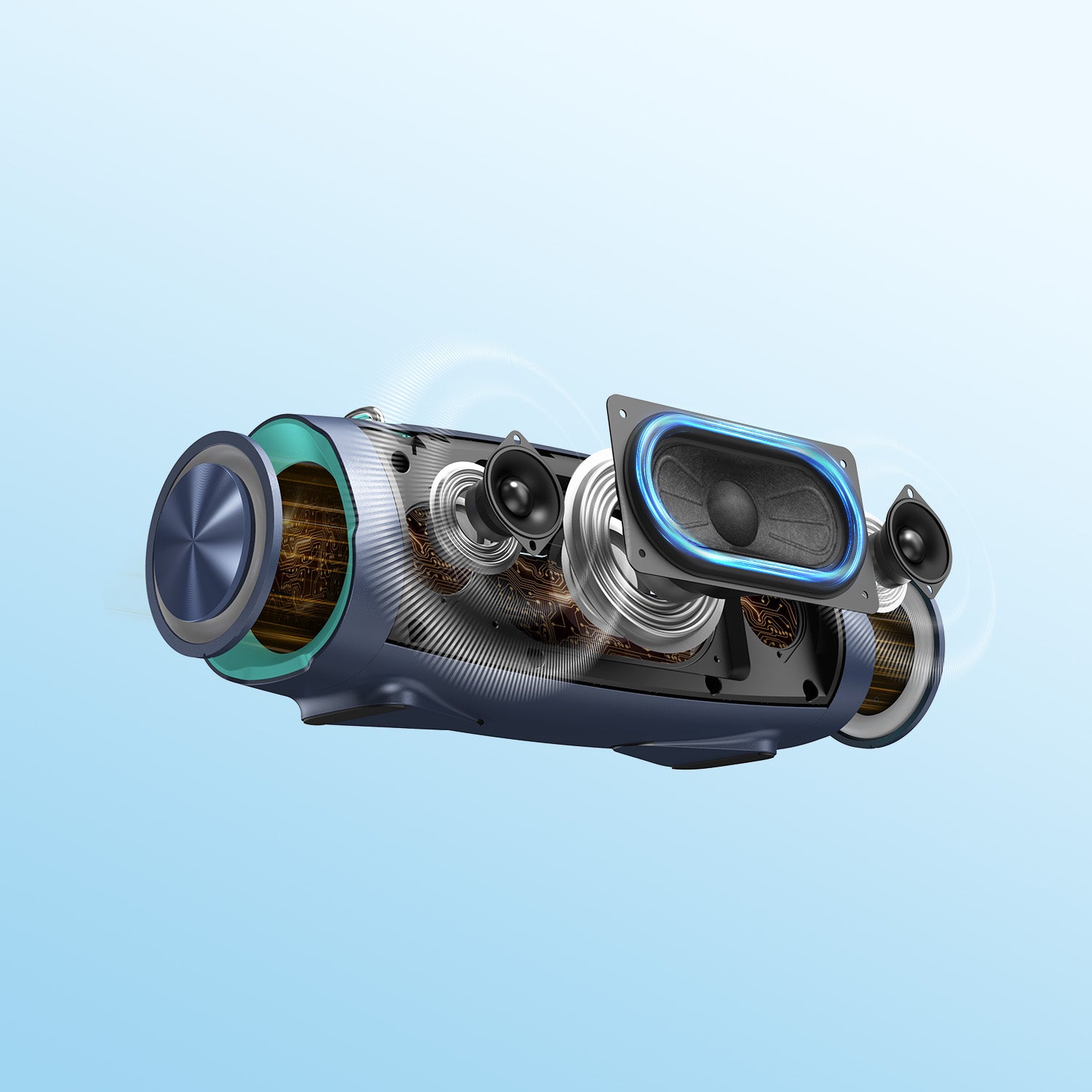 Elevate your audio with dual passive radiators, delivering powerful, rich bass instantly. Whether you're at home, outdoors, working out, or in the office, feel every beat with immersive, room-filling sound.