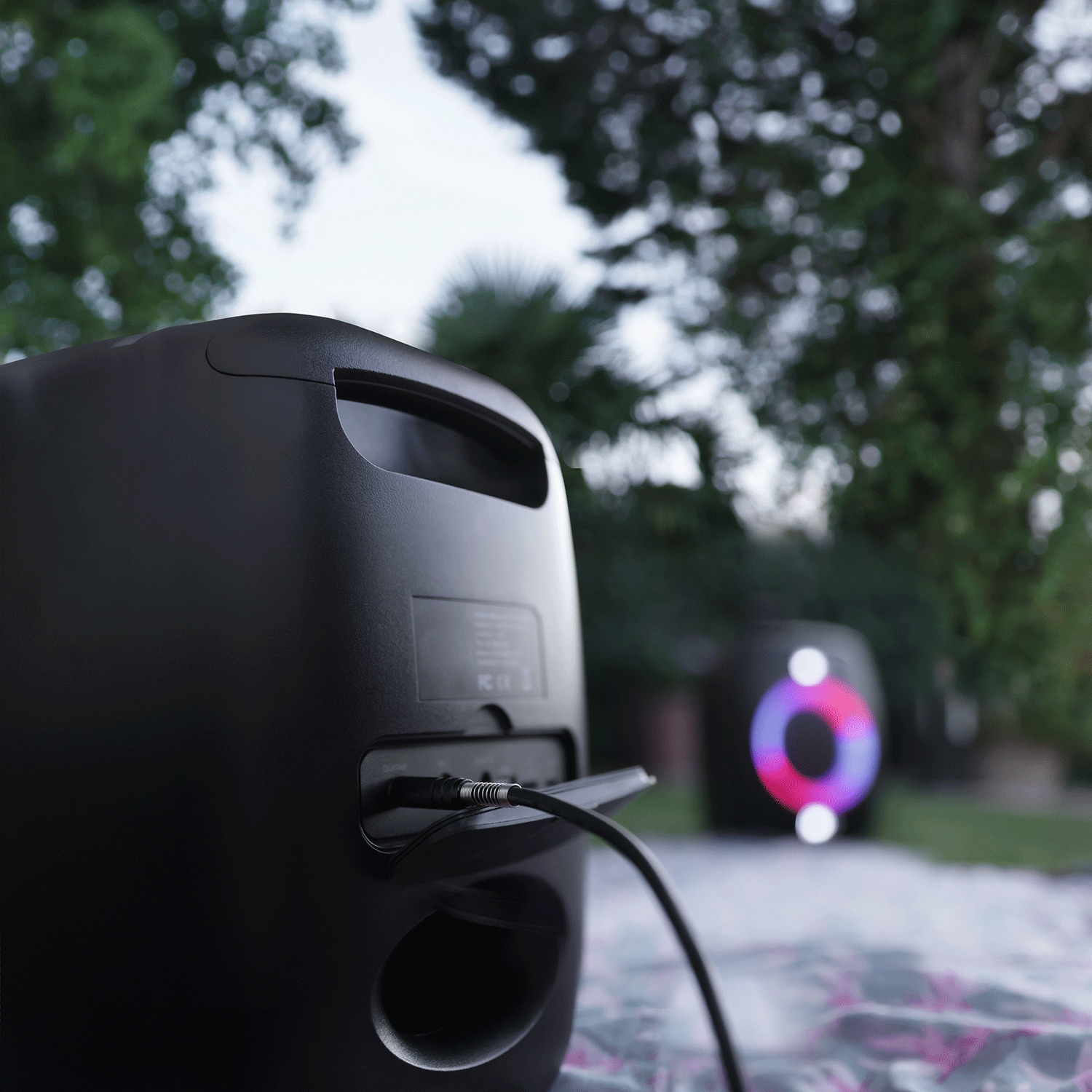 Plug in a mic or guitar and adjust bass, treble, and echo to fine-tune your sound. Whether for karaoke, DJing, or home listening, this party speaker is your perfect companion.