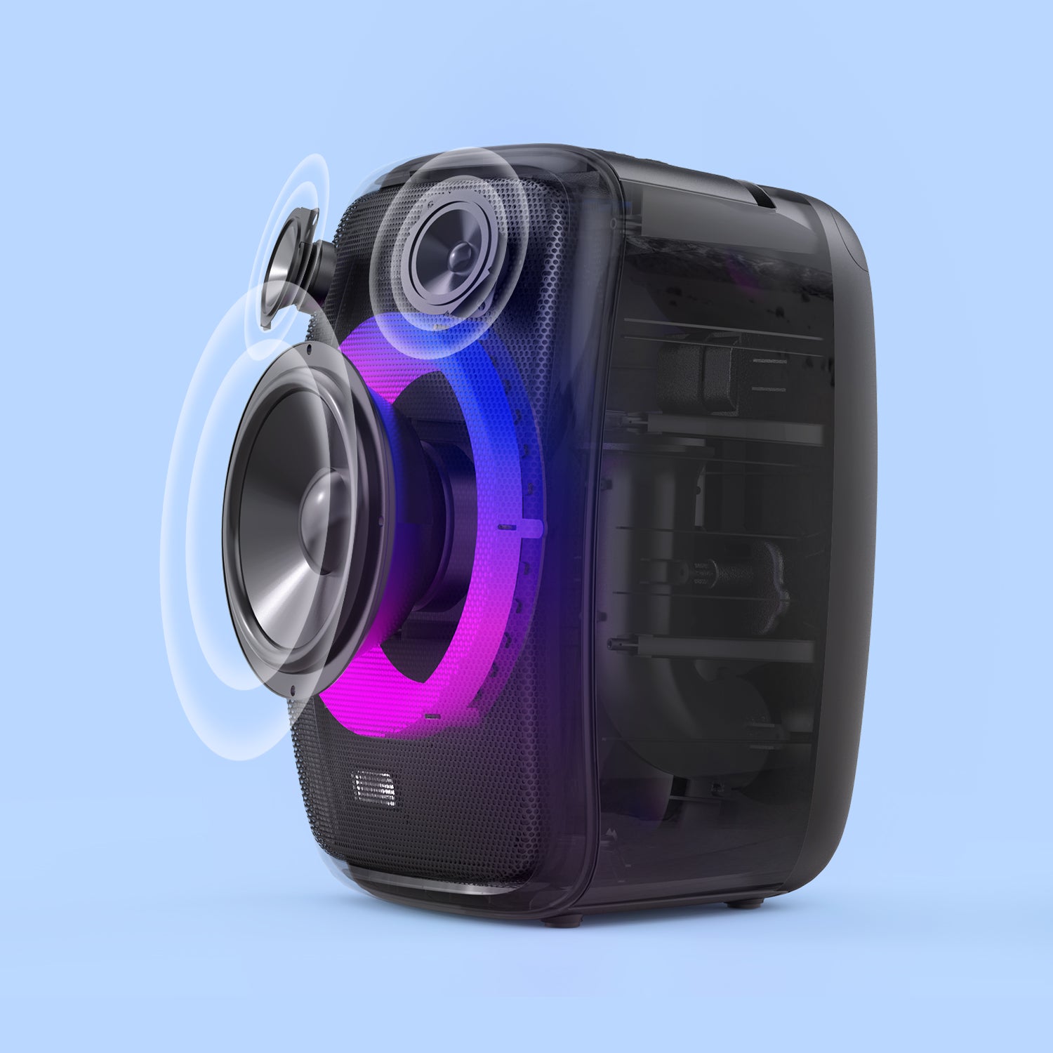 Pulsing multi-color lights sync with the beats to wow your crowd. Six light modes make it perfect for both parties and daily use.