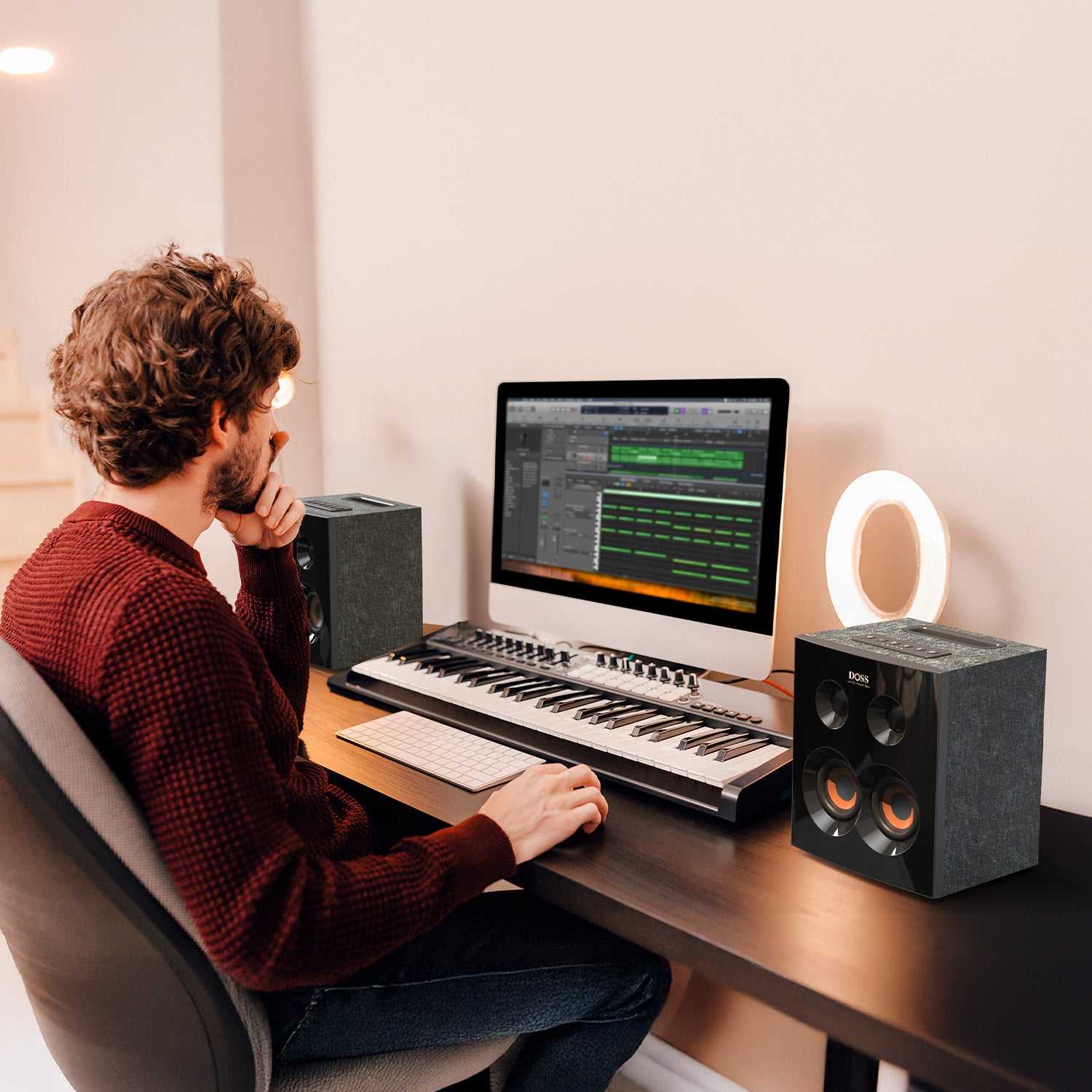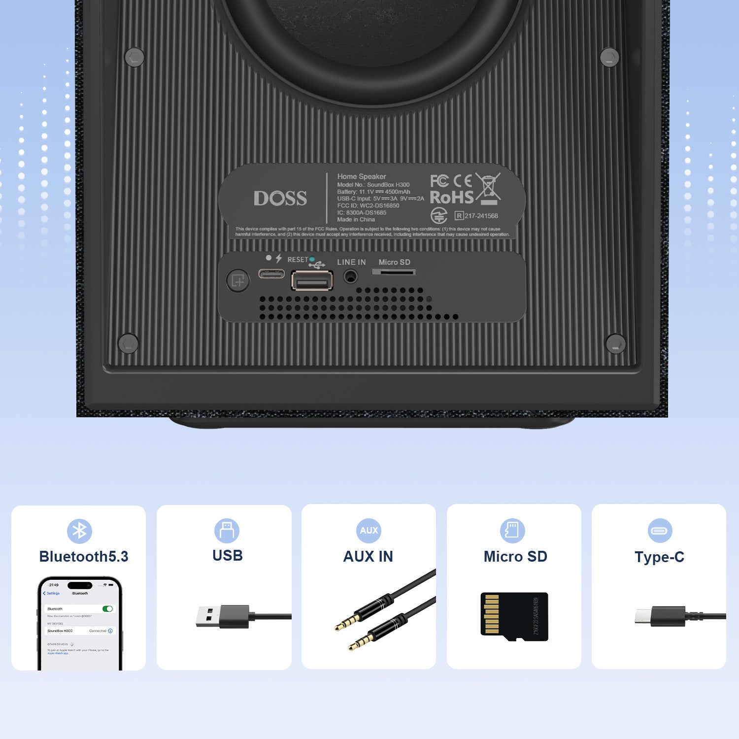 With its sleek, modern design and stunning mirror finish, the DOSS SoundBox H300 bookshelf speaker seamlessly blends into any room. Whether under your TV, on your bookshelf, or displayed in any room, it elevates your decor while delivering exceptional sound.