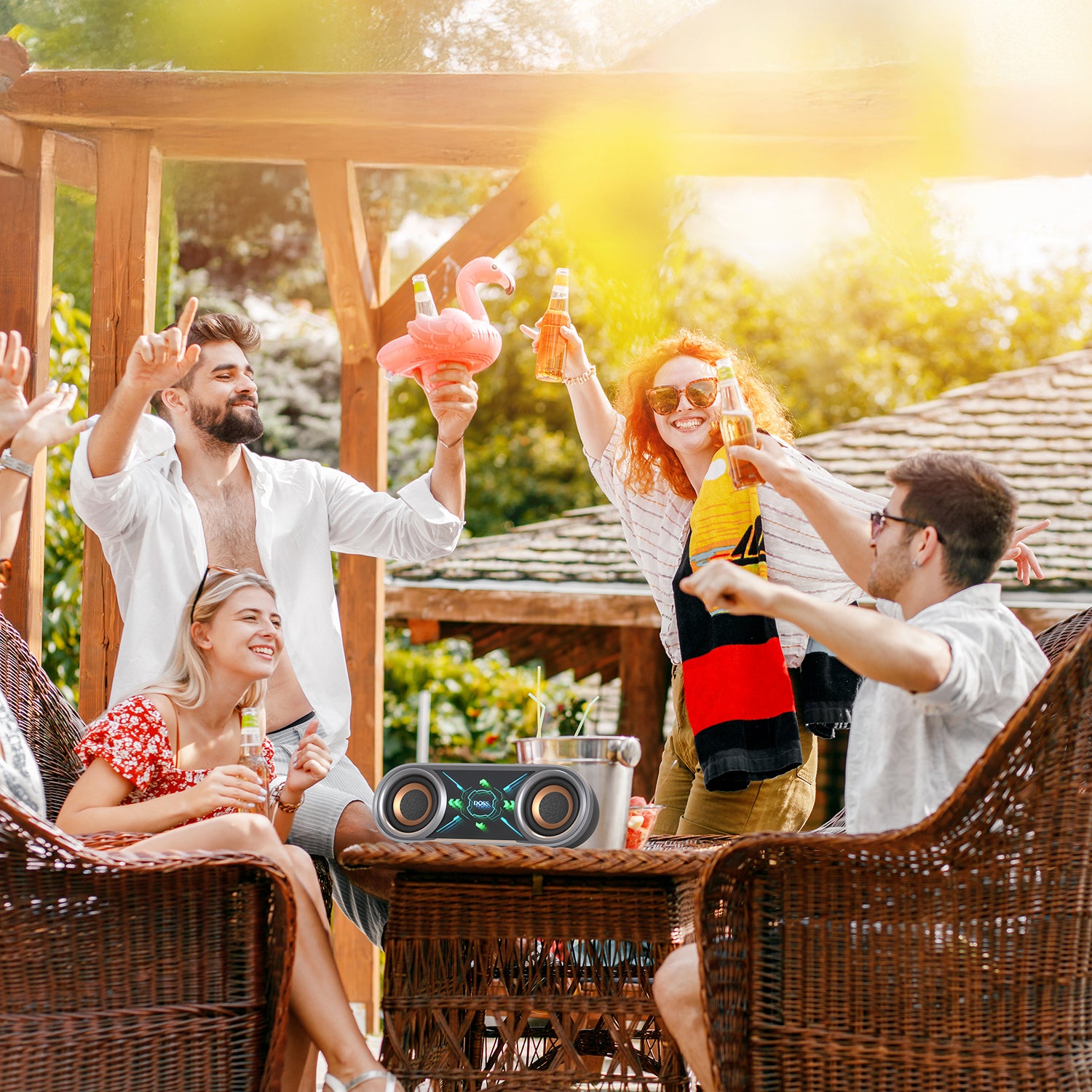 Built to withstand splashes and rain, the DOSS SoundBox Pro+ P400 is your go-to for any adventure. Enjoy high-quality audio at the beach, on a hike, or during water sports—rain or shine.