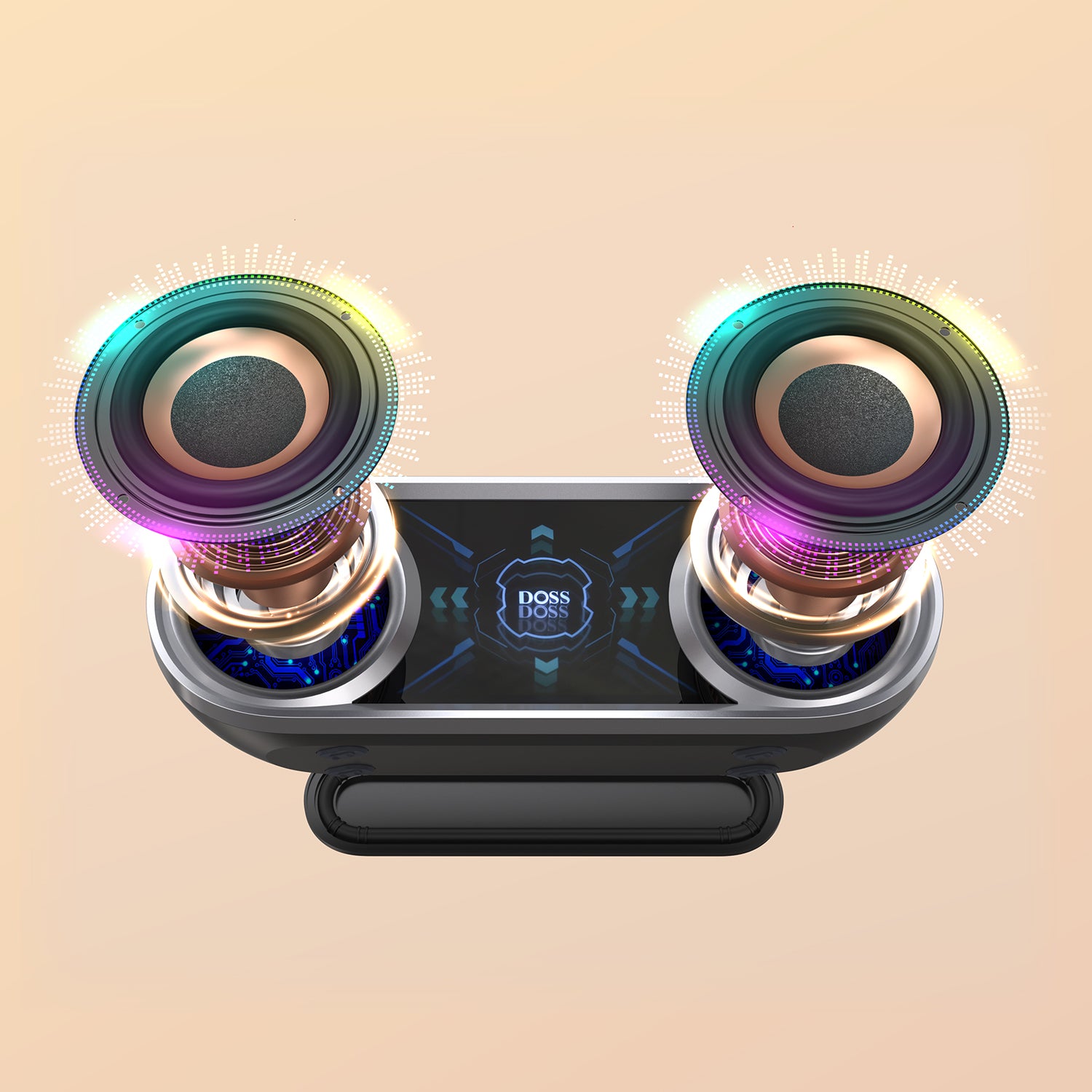 Equipped with dual 25W drivers and advanced DSP, the DOSS SoundBox Pro+P400 fills any space, ideal for outdoor adventures and home listening alike.
